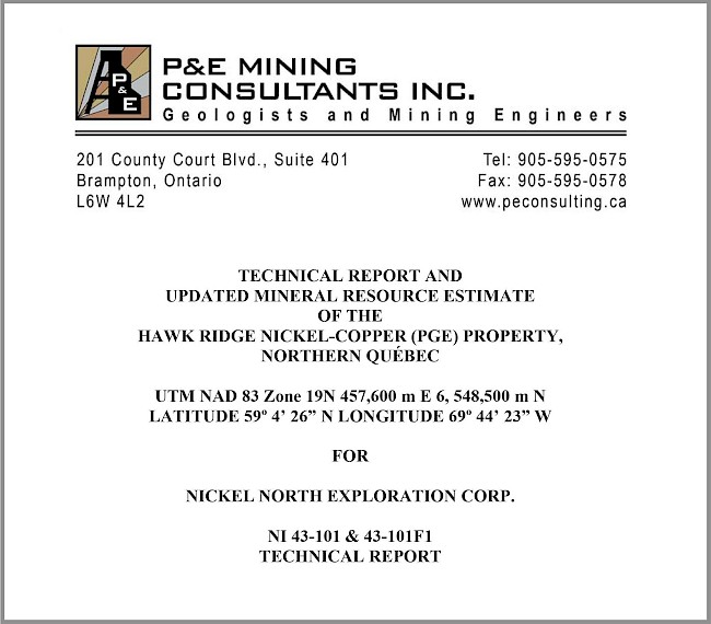Nickel North is a Canadian based explorer focused on defining a Ni-Cu-PGE resource at our Hawk Ridge Project in Quebec.
